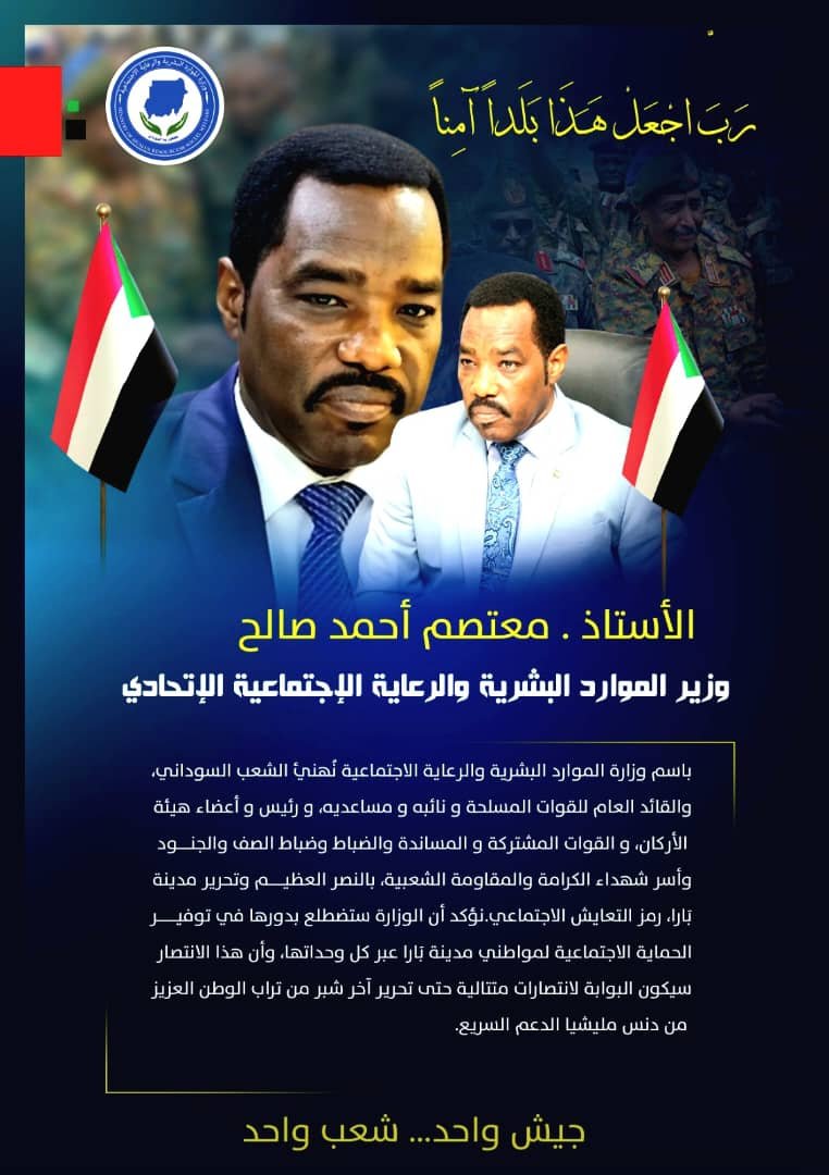 وزير الموارد البشرية والرعاية الاجتماعية يهنئ قيادة الجيش والمواطنين بتحرير بارا