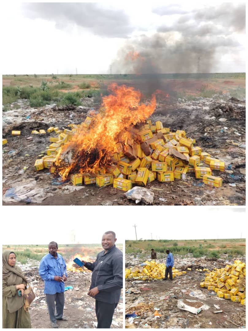 أبادت الهيئة السودانية للمواصفات والمقاييس فرع ولاية النيل 1222 كرتونة من البسكويت منتهية الصلاحية .