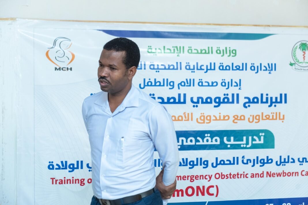 باشر البرنامج القومي للصحة الانجابية بوزارة الصحة الاتحادية، اليوم بقاعة الريح الطريفي بمدينة كسلا، تدريب مقدمي الخدمات بالمستشفى السعودي بكسلا، على دليل طوارئ الحمل والولادة والأطفال حديثي الولادة، بالتعاون مع صندوق الامم المتحدة للسكان.