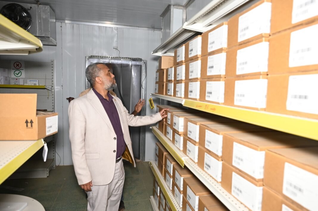 في إطار التحضير والتجهيز لعودة المؤسسات الاتحادية للخدمة، تفقد وزير الصحة الاتحادي د.هيثم محمد ابراهيم، في زيارة ميدانية اليوم وبمعيته عدد من قيادات الوزارة ، بنك الدم المركزي، سلسلة التبريد المركزية للتحصين، معمل الصحة العامة (استاك) و معهد الصحة العامة