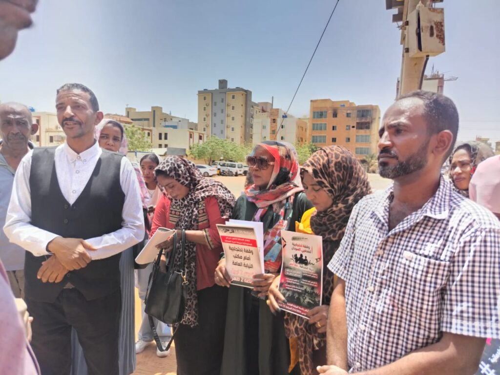 نظم الصحافيون بولاية الخرطوم وقف احتجاجية امام مقر النيابة العامة بشرق الخرطوم استقبلها مساعد اول النيابة العامة مولانا كمال محجوب ومولانا عوض مدير الإعلام وقدم الصحافيون مذكرة تحوي مطالبهم بمراعاة خصوصية الصحفي في قانون المعلوماتية في إشارة لعدد من قضايا القبض والاعتقال لصحفيين بموجب ذلك القانون