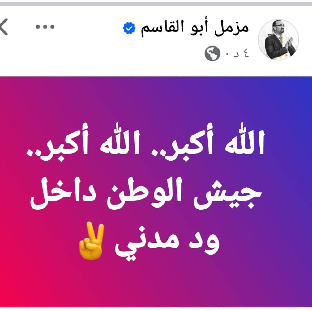 التهنئة للقوات المسلحة والقوات المساندة لها وفي كل مكان ولشعبنا وهو يسترد كرامته وأمنه واستقراره.