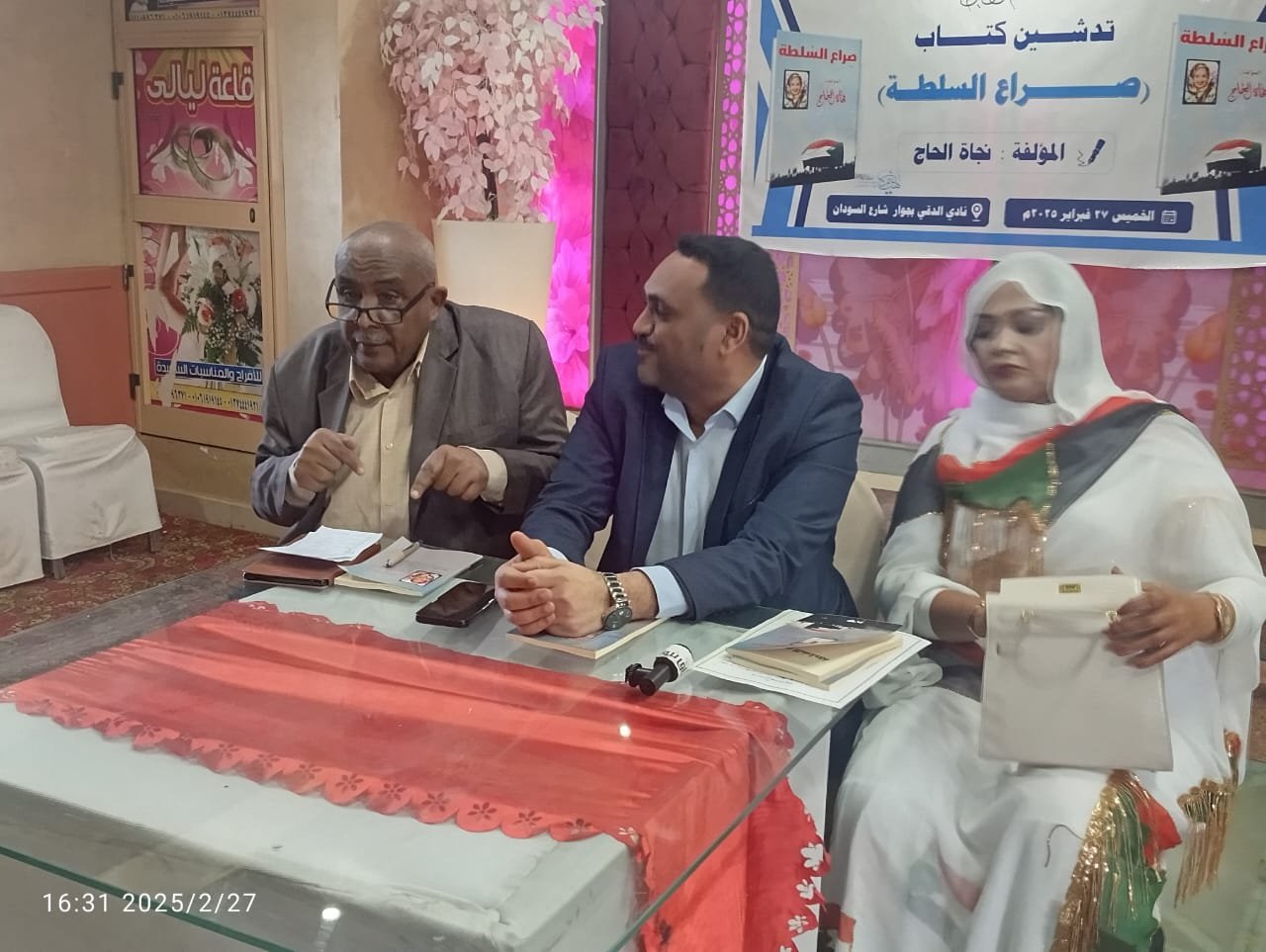 دشنت الكاتبة الصحافية السودانية الأستاذة نجاة الحاج امس (الخميس) مؤلفها الجديد بعنوان(صراع السلطة) والذي شخصت خلالها مكامن وأسباب الأزمة السودانية وحددت من خلال الكتاب وصفة الدواء للمشكل.