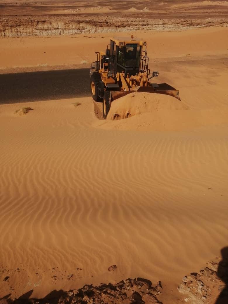 الهيئة القومية للطرق والجسور تشرع في ازالة الكثبان الرملية بالقطاع الشمالي