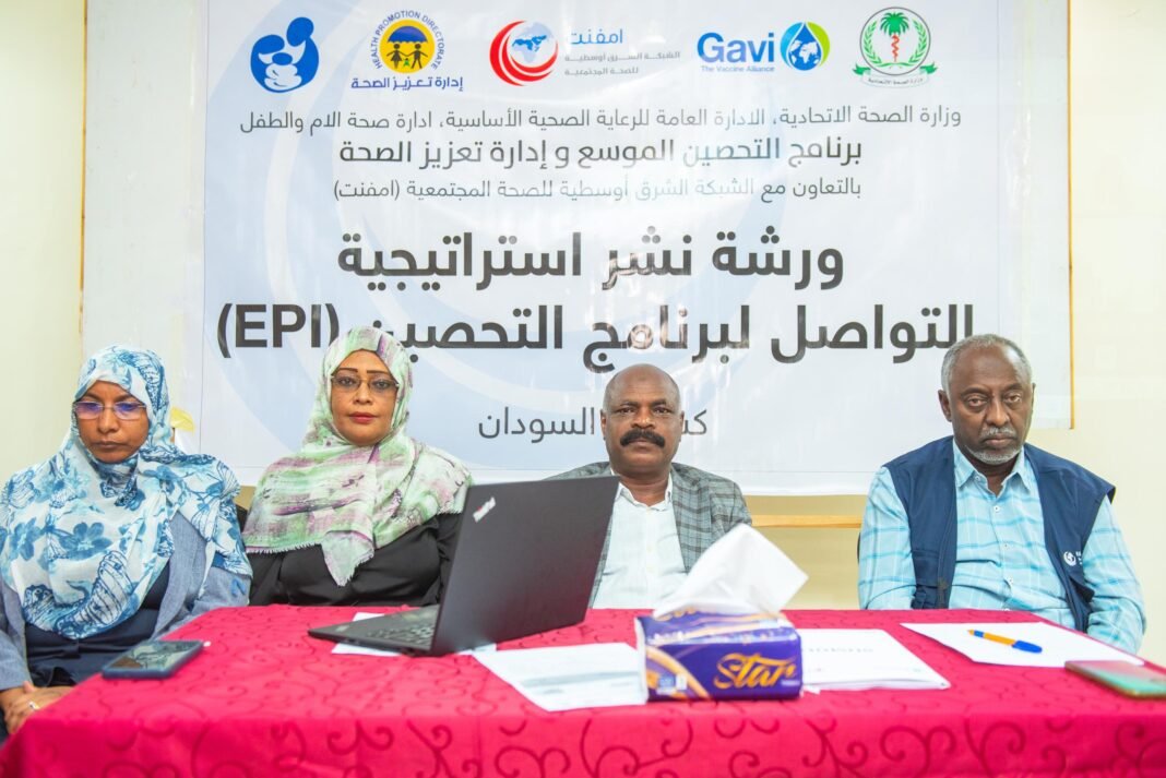 أعلن برنامج التحصين الموسع وإدارة تعزيز الصحة بوزارة الصحة الاتحادية، عن وضع استراتيجية الاتصال لبرنامج التحصين الموسع لفترة ثلاث سنوات بالتعاون مع الشبكة الشرق أوسطية للصحة المجتمعية.