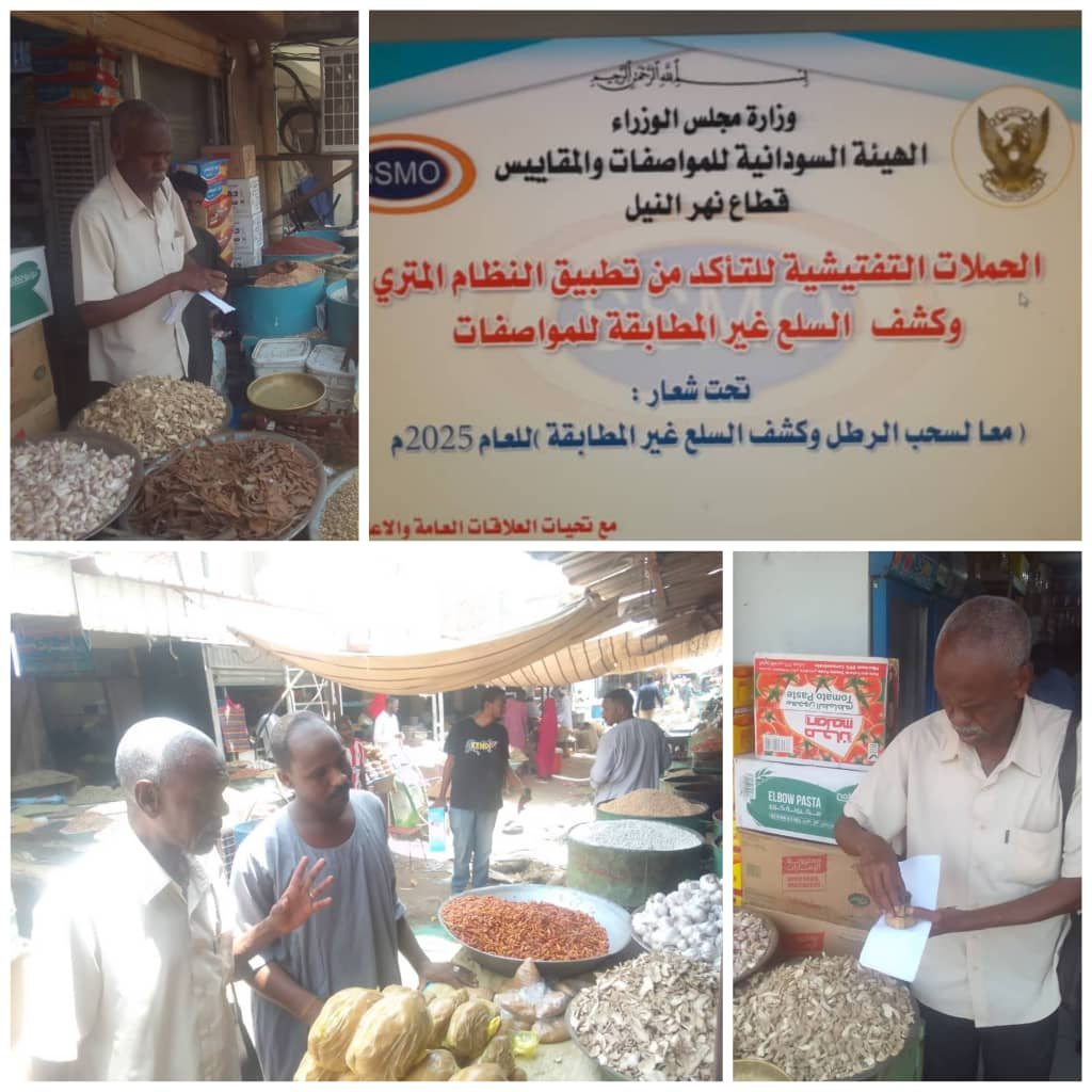 ضمن الحملة التذكيرية بإلغاء الرطل ومشتقاته في المعاملات التجارية ضمن حملة المولد النبوي الشريف واصلت الهيئة السودانية للمواصفات والمقاييس قطاع ولاية نهر النيل حملاتها التفتيشية والتوعوية في أسواق الولاية، بهدف تطبيق النظام المتري بشكل كامل واستبدال وحدة الرطل المستخدمة محليًا بوحدة “الكيلوجرام” المعتمدة عالميًا.