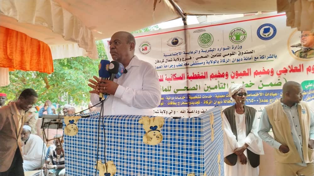 دشن واليا شمال وغرب كردفان في منطقة ودعشانا بولاية شمال كردفان اليوم العلاجي المجاني الذي ينفذه فرع الصندوق القومي للتأمين الصحي بولاية شمال كردفان بشراكة مع ديوان الزكاة بالولاية ومستشفى مكة للعيون بالأبيض.